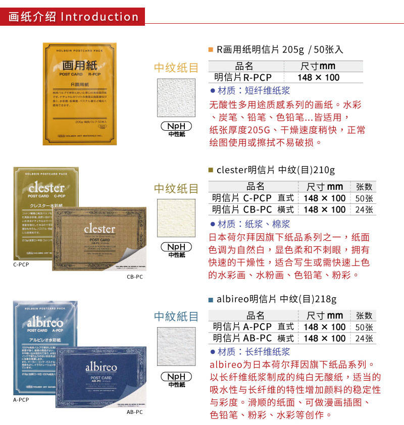 商品說明: 多款画纸,可适用于各种不同绘画媒材使用。 可当做写生画纸,轻松绘制个人特色明信片当作贺卡送礼。 采用常规的明信片大小相同,不需自行裁切水彩纸,能轻松绘制个人特色明信片。外出速写、设计随手绘制稿都很合适。 中性无酸纸不易变质,能长久保存作品,适合各种绘画表现。