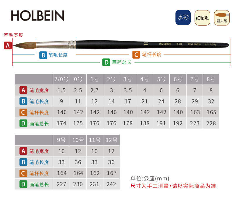 Holbein荷尔拜因 510 红貂毛圆头笔