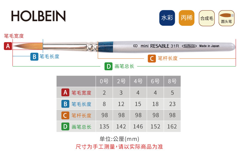 Holbein荷尔拜因 mini 31R 合成纤维毛圆头笔