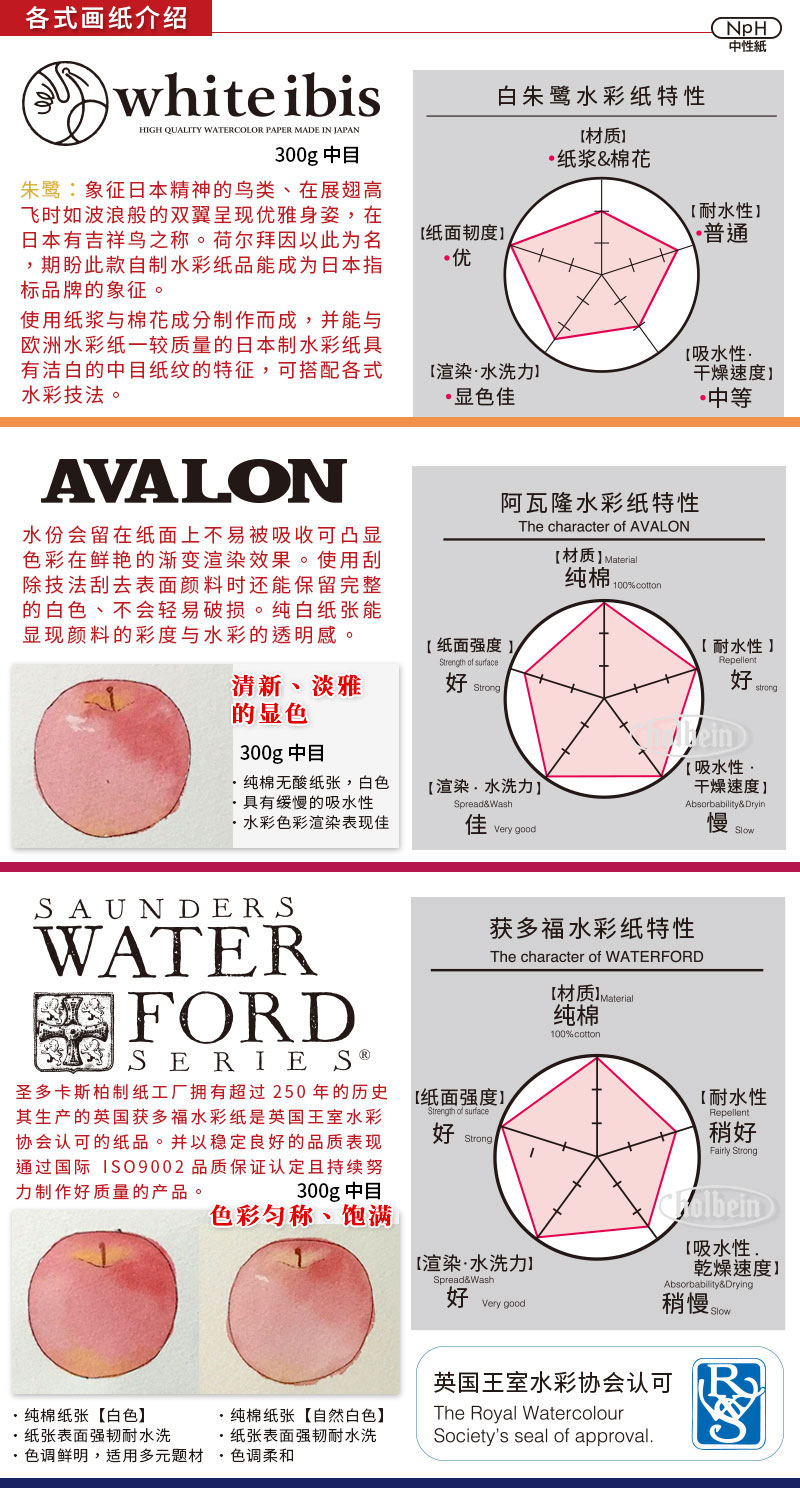 - 荷尔拜因的阿瓦隆AVALON系列,是从英国引进的水彩画纸,并推出了三种不同的装订方式,满足使用者各种的需求。
