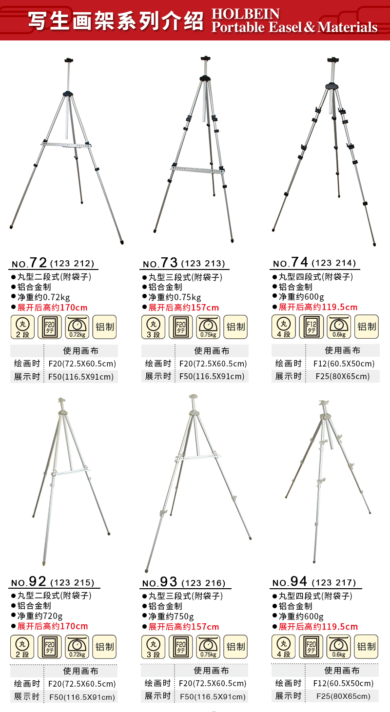 Holbein荷尔拜因 铝制三段式 携带型写生画架 NO.93